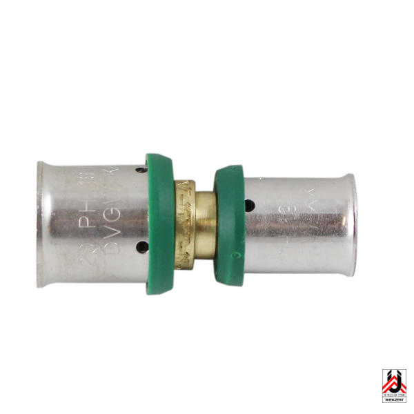 Pressfittinge mit Bestellnummer T xxxx xx sind aus entzinkungsbeständigem und trinkwasserhygienisch geeignetem Messing. Doppel-O-Ring aus EPDM entsprechen KTW/UBA, Edelstahl Presshülse, Kunststoffring Grün zur Zentrierung der Presshülse. Die Messingqualität entspricht den einschlägigen Normen für Trinkwasserinstallationen, wie EN1213, ÖNORM B 5014-3 und ÖNORM B 5024-3, sowie DIN 50930, Teil 6 und TRV. Betriebstemperatur bis 90 °C, max. Betriebsdruck 10 bar. Dimensionen 16 – 40 unverpresst undicht.