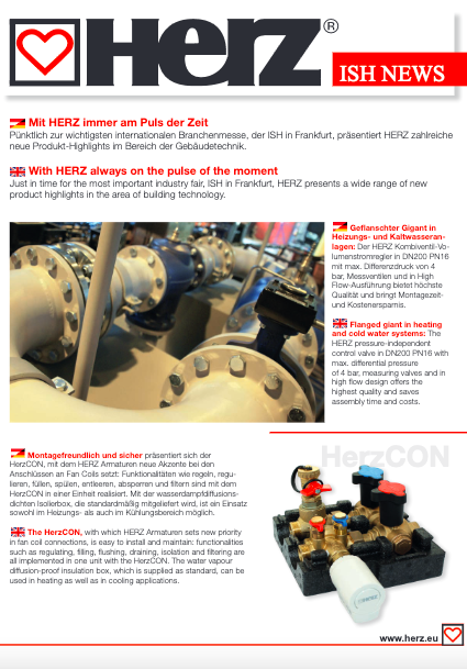 Как раз во время самой большой индустриальной выставки ISH во Франкфурт, ГЕРЦ представит широкий спектр новых продуктов в области строительных технологий.
