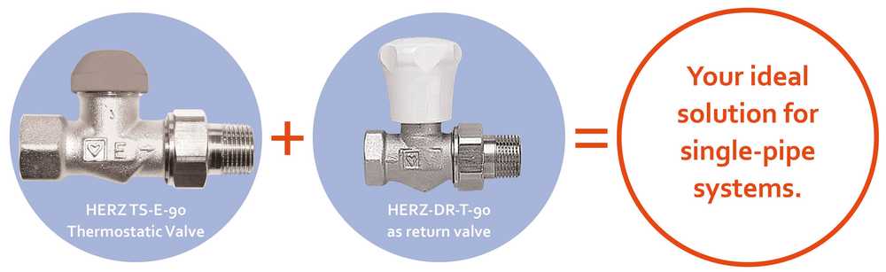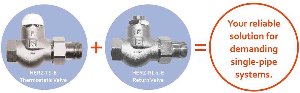 The HERZ TS-E thermostatic valve is ideal for highly problematic single-pipe systems or gravity-fed systems. This valve offers approximately five times the flow rate of a standard valve, with a kVs value of around 5.1. This solution is complemented by the HERZ RL-1-E return valve, which is designed for maximum flow in single-pipe and gravity systems.