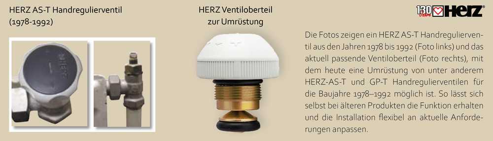 Steckt die Ventilspindel fest und lässt sich nicht mehr bewegen, kann alleinig durch den Austausch des Ventiloberteils die Funktion des Ventils wiederhergestellt werden, sogar bei Handregulierventilen. Besonders bei Modellen wie dem HERZ AS-T-90 ab Baujahr 1992 kann das Ventiloberteil sogar unter Druck gewechselt werden, was zu einer deutlichen Zeitersparnis führt. Hierfür bietet HERZ auch das nötige Austauschgerät für Ventil-oberteile an: HERZ Changefix.